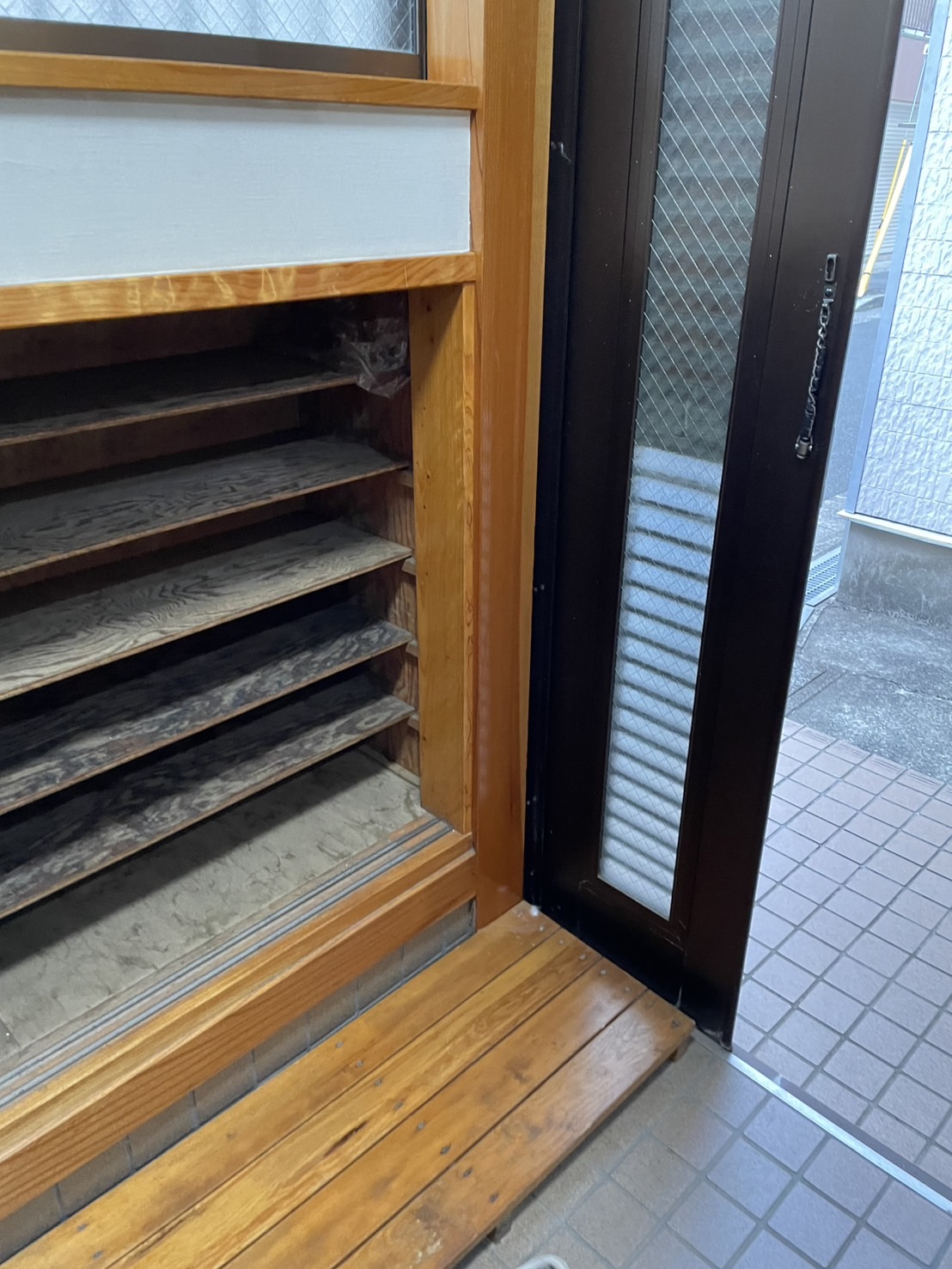 また、劣化が進み、木と木の隙間や段差によって引っかかりやすく、つまずきの原因となっていた上り框は、高さを整え、隙間のないL字型構造に刷新。安全性と見た目の美しさを兼ね備えた玄関へと改善しました。